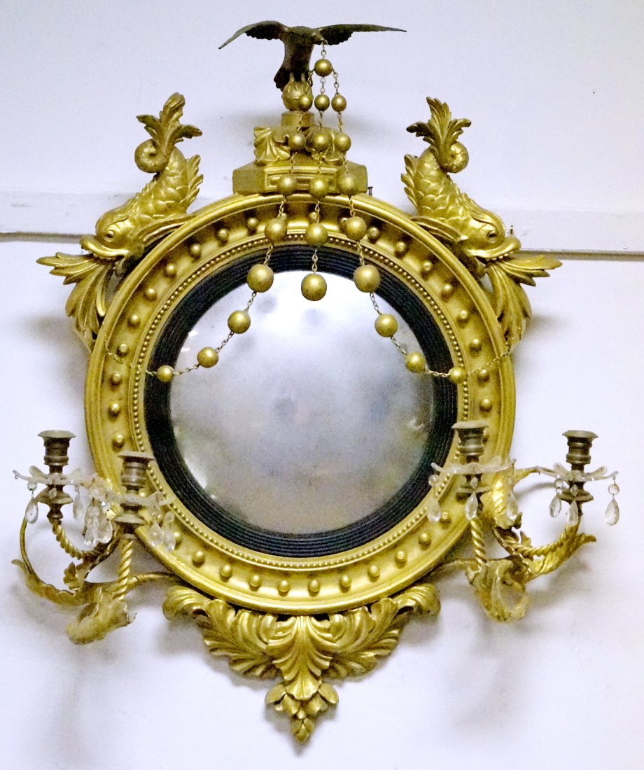 Elegant Federal Style Gold Leaf Eagle Convex Mirror 25 x 36