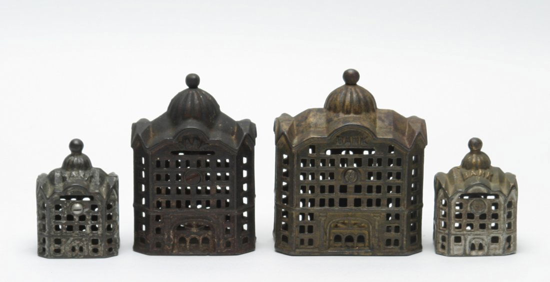 CONTEMPORARY WOODEN PLATE RACKS, LOT OF TWOMar 06, 2026ASSORTED CAST-IRON FIGURAL STILL / PENNY BANKS, LOT OF SIXMar 05, 2026LOT OF CAST IRON STILL BANKS6 days Left(2) PAINTED CAST IRON "DOMED" STILL BANKSMar 15, 2026(2) PAINTED CAST IRON "DOMED" STILL BANKSMar 15, 2026(2) CAST IRON STILL BANKSMar 15, 2026CAST IRON DOMED STILL BANKMar 15, 2026(2) CAST IRON "SKYSCRAPER" STILL BANKSMar 15, 2026(2) Kenton Brand Cast Iron Still Safe BanksMar 01, 2026Mudd Mfg. Co. Peoples Home Bank and Nicol & Co. No. 358 State Savings BankMar 01, 2026(2) Cast iron building-shaped banksMar 28, 2026(4) Cast Iron Moon & Stars Center Door Dial Safe Still BanksMar 01, 2026(2) Kenton Brand Cast Iron Savings Deposit Still BanksMar 01, 2026Cast Iron Coin Deposit Bank and Diamond Safe Still BanksMar 01, 2026(2) Henry Hart Double Door with Medallion Cast Iron Still Safe BanksMar 01, 2026Cast Iron Safe Deposit, Save Your Pennies, and North Side Savings BankMar 01, 2026