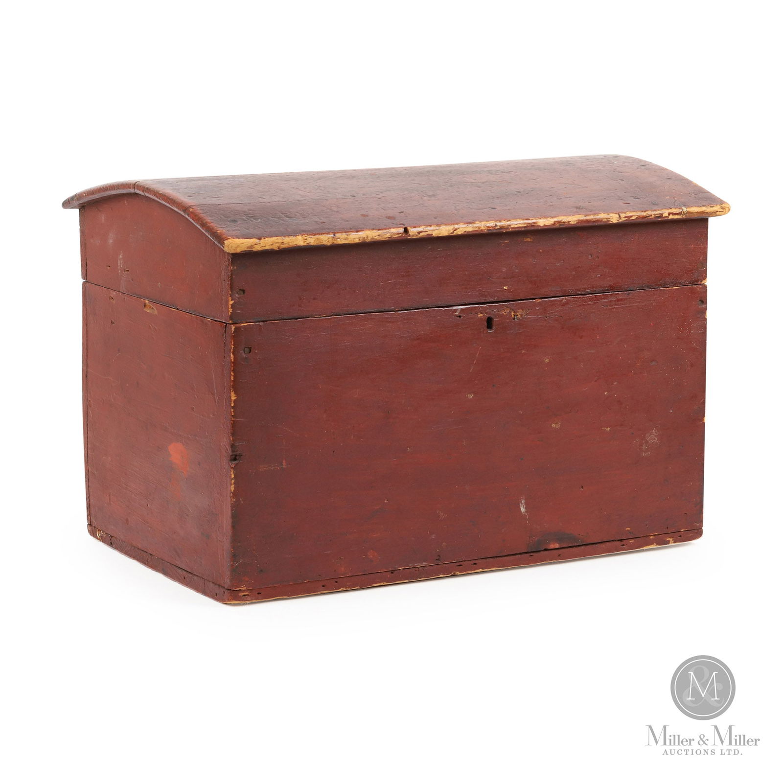 AMERICAN GRAIN-PAINTED POPLAR AND PINE YOUTH-SIZE BLANKET CHEST, DATED 1837. 12.5"h. 20.75"w.Mar 19, 2026DIMINUTIVE BLANKET CHEST IN ORIGINAL RED PAINT 18" X 30" X 15"5 days LeftLarge Red Dough BoxMar 28, 2026HINGED LID RED & BLACK SPONGE PAINTED DOCUMENT BOX W/ INITIALS 6" X 14" X 8"5 days LeftAMERICAN BITTERSWEET-PAINTED PINE DOCUMENT BOX. 6.5"h. 17.5"w. 7.25"d.Mar 19, 2026AMERICAN PAINT-DECORATED PINE DOME TOP DOCUMENT BOX. 5.25"h. 15.5"w. 10"d.Mar 19, 2026Small Sea Captain's Camphor Wood ChestMar 21, 2026Quebec Storage ChestMar 28, 2026RED TOLE DOME TOP BOX MAINE TOLEWARE DOCUMENT BOX ATTRIBUTED TO STEVENS AND BUCKLEY TIN SHOP. 6.5"h.Mar 19, 2026AMERICAN RUST RED-PAINTED DOLL-SIZE BLANKET CHEST. 10.5"h. 17.5"w. 9.25"d.Mar 19, 2026Paint-Decorated Wooden Box.Mar 22, 2026