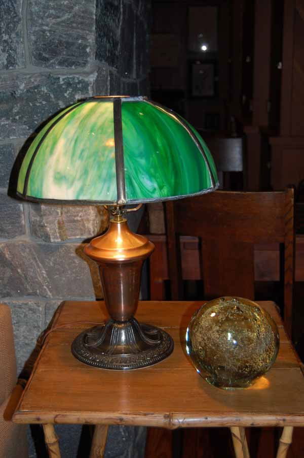domed green glass panel lamp