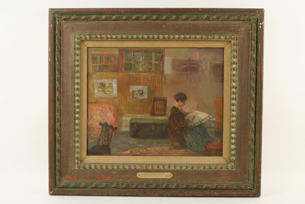 J. Bonaki, early 20th century, Interior Scene with Figures, Oil on Canvas Painting7 days LeftGino Giordano (Italy,1924-?) oil paintingMar 15, 2026Gino Giordano (Italy,1924-?) oil paintingMar 22, 2026Adrien Witte (Belgium,1850-1935) oil painting antiqueMay 03, 2026Antique early 20C German oil painting signedMay 03, 2026Antique early 20C European oil paintingMar 22, 2026Vintage mid 20C Danish oil painting signedApr 05, 2026Antique early 20C American oil paintingApr 19, 202619th Century O.L. Verioux Young Woman Writing Letters Oil Painting On CanvasFeb 28, 20261916 miniature portrait painting of a woman seated in a wicker chair in an interior with a JapaneseMar 01, 2026Interior Scene, Woman Reading, Robert Volcker.Feb 28, 2026European Painting circa 1910-1940 Artist: Signature illegible. oil painting on canvas mounted on2 days LeftR. Grant Oil on Canvas Portrait of a Maiden in Newcomb Macklin attr Frame c1890Mar 07, 2026Sanders (US, mid 20C) oil painting3 days LeftMelbourne Hardwick 1857-1916 Figural Oil PaintingMar 11, 2026Alois Reichl "Old Woman" Oil On Board PaintingFeb 28, 2026