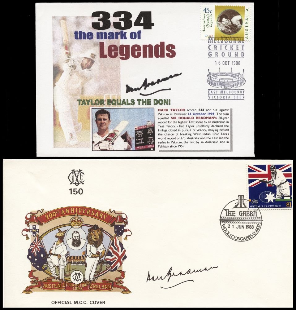 DON BRADMAN: Signed items, noted covers (2); “Australia