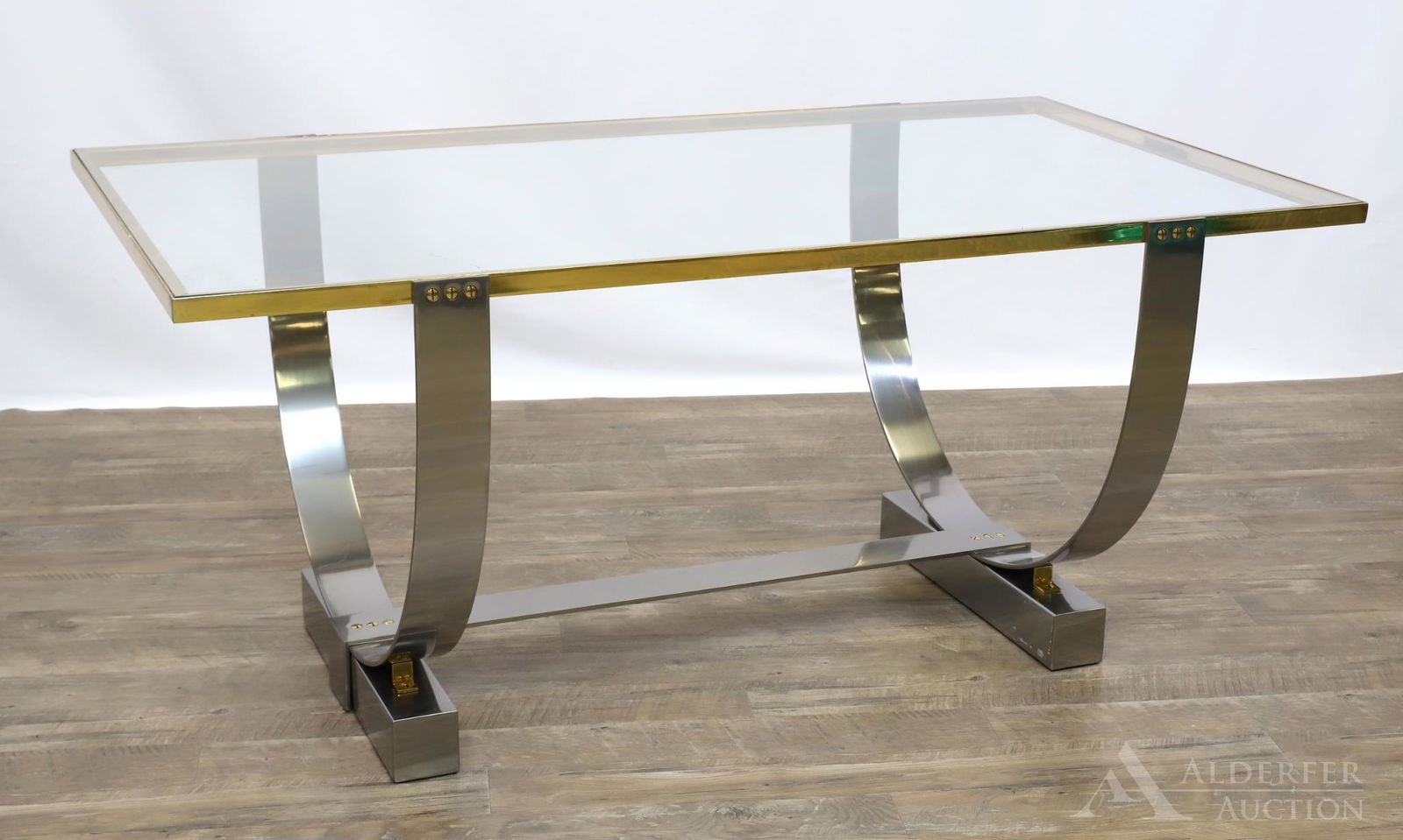 CHROME AND BRASS GLASS TOP COFFEE TABLE IN THE MANNER OF ROMEO REGA C 1970.Kamelot Auctions4.4(345)$2505 days Left