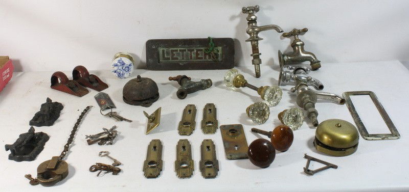 Door hardware lot, knobs, locks, mail slot, knocker