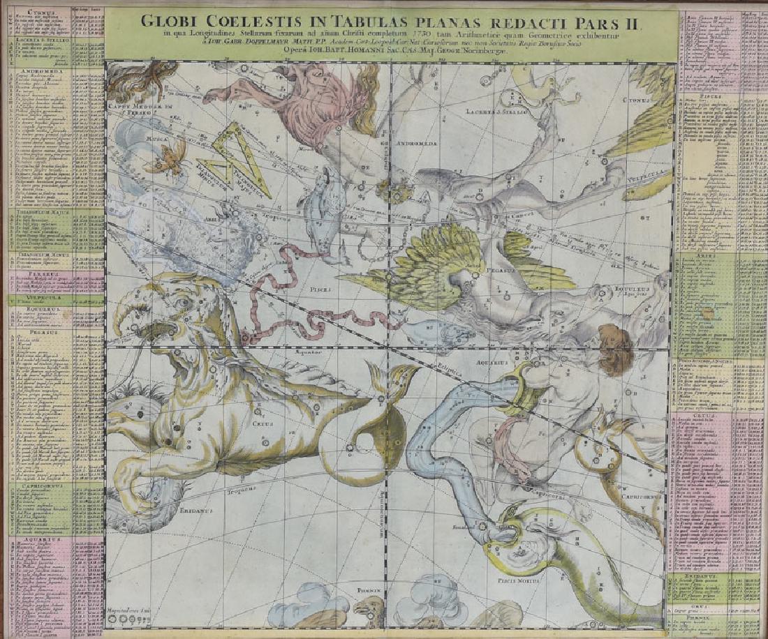 SoldPhaenomena Motuum Irregularium, celestial mapPhaenomena Motuum Irregularium, celestial map, 18th c., Doppelmayr/Homann, each sheet: 19"h x 22.5"w (sight), 43.5"h x 26.75"w (framed ensuite) Provenance: Property from a New York Corporate CollectioSee Sold Price