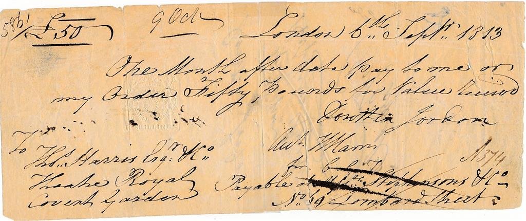 Dorothea Jordan- Signed Document from 1813