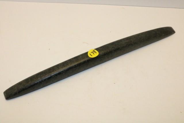 Sold11 1/2" Granite Pick. Madison Co, OH. Ex-Cuckler,11 1/2" Granite Pick. Madison Co, OH. Large black and white Granite example with fine polish. Rare. Very fine condition, worn over material seam 2" from end. Ex-Gary Cuckler, Tom Davis, Earl TownsendSee Sold Price