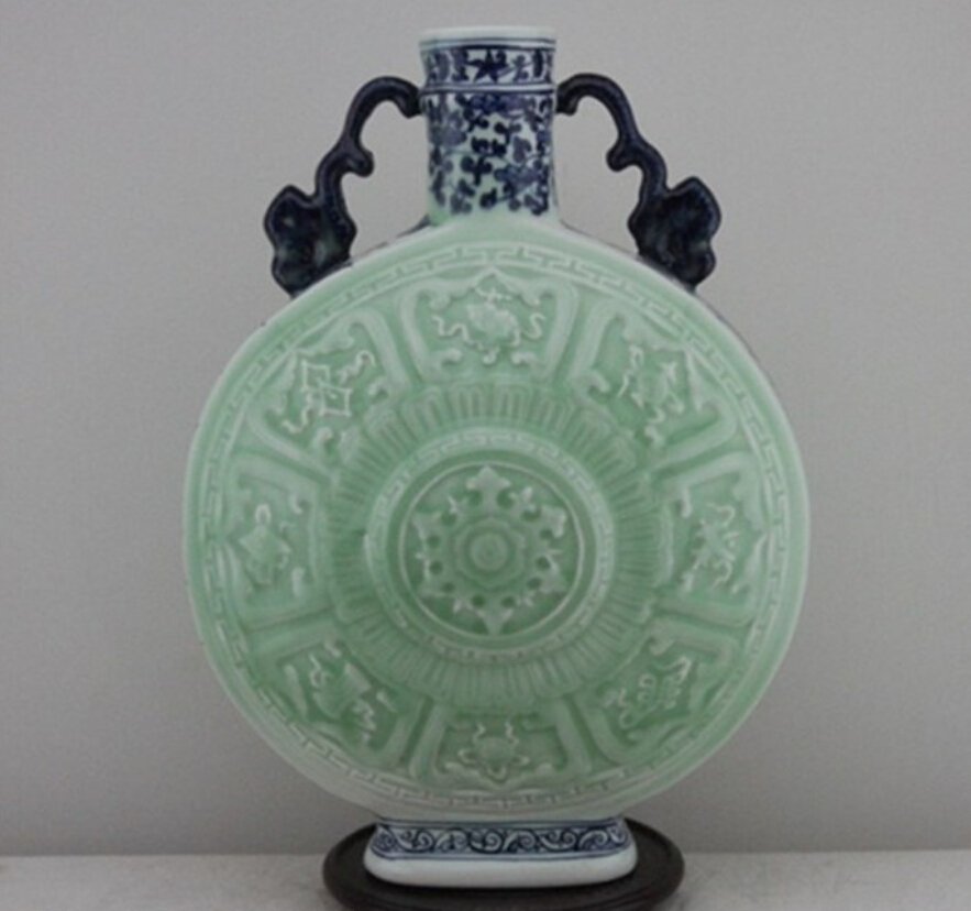 A Qing Qianlong sky blue glaze eight treasure entwined lotus pattern flat bottleEastern Art Auction House4.6(241)$1004 days Left