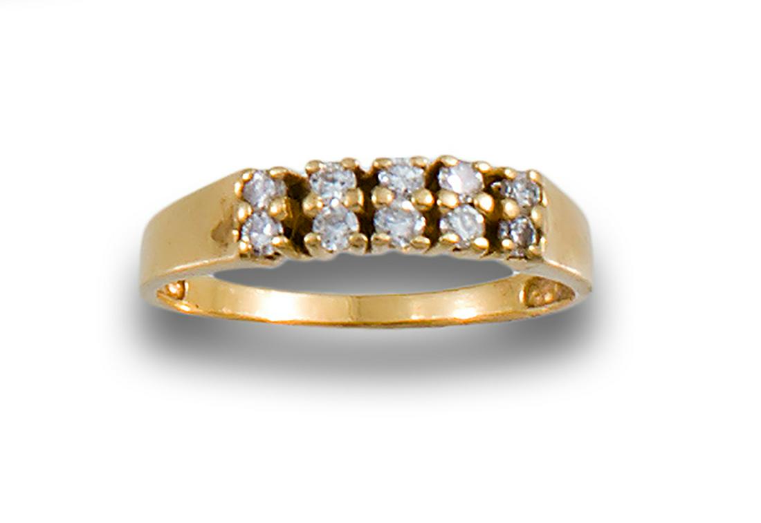 14K YELLOW GOLD FANCY CZ RING BAND ROUND PRINCESS