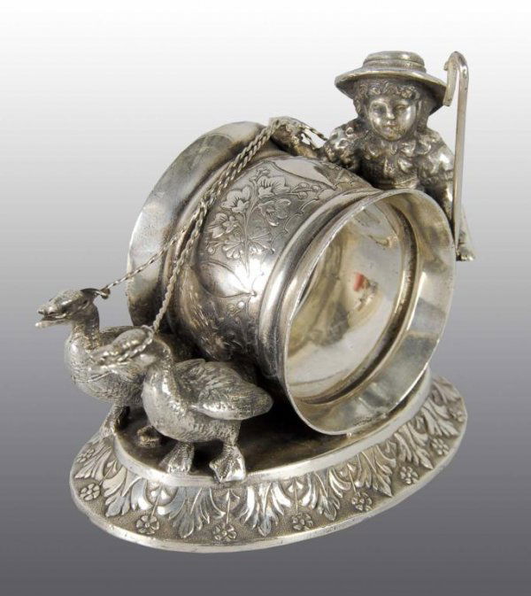 Double Greenaway Geese Figural Napkin Ring.