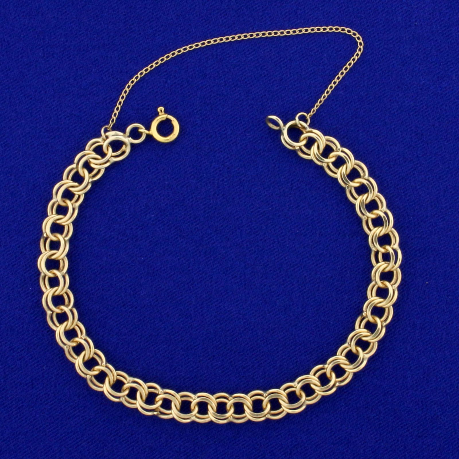 Double Loop Charm Bracelet in 14K Yellow Gold