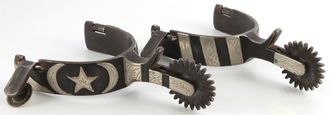 LOT OF 2: INOX SWIVEL BOLSTER STILETTO SWITCHBLADE WITH BRAZILIAN COW HORN HANDLES AND DISCONTINUED7 days LeftMexican Silver Inlaid Charro Spurs, PairApr 14, 2026Stunning Scottish Highland FLINTLOCK PISTOLS Pair Silver InlaidMar 28, 2026Vintage Horse BrassesMoran Brothers, Pair of Steer Head Spurs7 days LeftVery Fine Belgian PERCUSSION PEPPERBOX PISTOL Silver InlaysMar 28, 2026SET OF SILVER MOUNTED SPURS WITH LEATHERSMar 18, 2026Two Silver Belt Buckles6 days LeftCALIFORNIA OVERLAID SPADE BIT.Mar 18, 2026Antonio Pineda, Etc. Silver Belt Buckles, 2Feb 26, 2026ANTIQUE IMPERIAL RUSSIAN COSSACK SILVER DECORATED BELT3 days LeftJ.O. BASS (1879-1950) SPURSMar 18, 2026CURB BIT WITH SILVER OVERLAYMar 18, 2026ANTIQUE RUSSIAN CAUCASIAN / CIRCASSIAN SILVER DECORATED HORSE SADDLE3 days LeftAmerican Rev War era Silver Hilted Hi Ranking Cavalry Officers Sword.Mar 28, 2026Western Style Silver Napkin Ring with HorseshoeMar 08, 2026