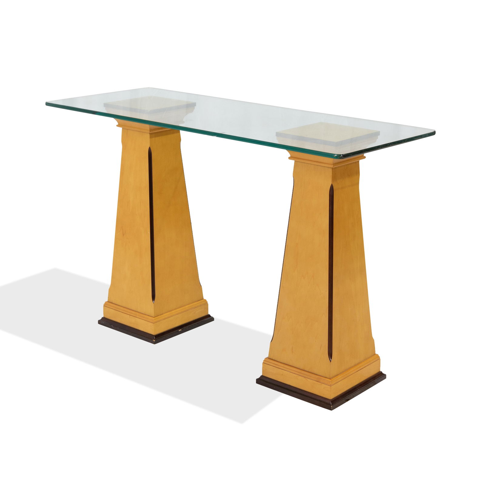 A BRASS AND IRON CONSOLE TABLE HAVING CORINTHIAN CAPITALS AND A BEVELED GLASS TOP C 1970.Kamelot Auctions4.4(346)$5003 days Left