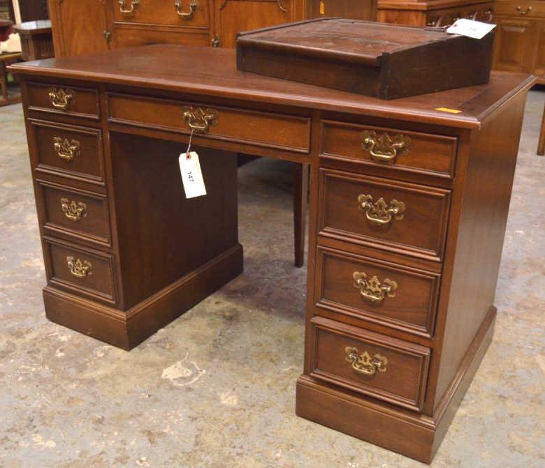 A large early 20th Century leather topped nine drawer Pedestal Desk 78 x 137 x 68cmHannam's Auctioneers Ltd4.3(415)£10Feb 12, 2026