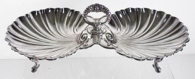 DOUBLE SHELL SILVER PLATED SERVING DISH