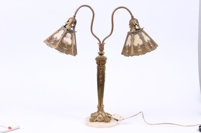 GILT PATINATED DESK LAMP WITH ART GLASS SSHADEEchoes Antiques & Auction Gallery, Inc.4.6(464)$503 days Left