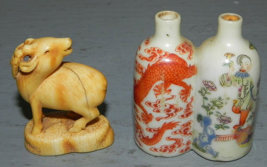 Double snuff bottle & ivory or bone netsuke.