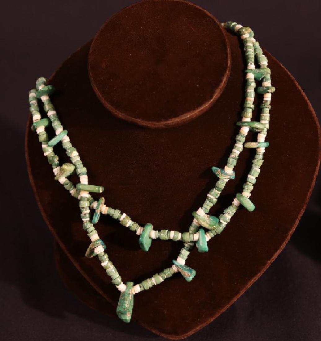 SoldNative American Turquoise Heishi Necklaces 4pc LOTA collection of four (4) vintage Navajo Cheyenne Indian heishi multi-color and turquoise beaded necklaces. Includes: one (1) 19" single .2" green turquoise beaded necklace; one (1) 12" double strand mSee Sold Price