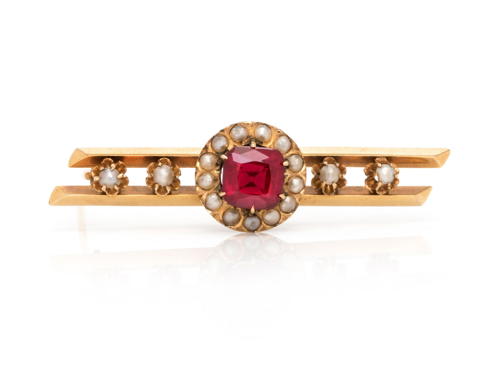 DOUBLET AND PEARL BAR BROOCH