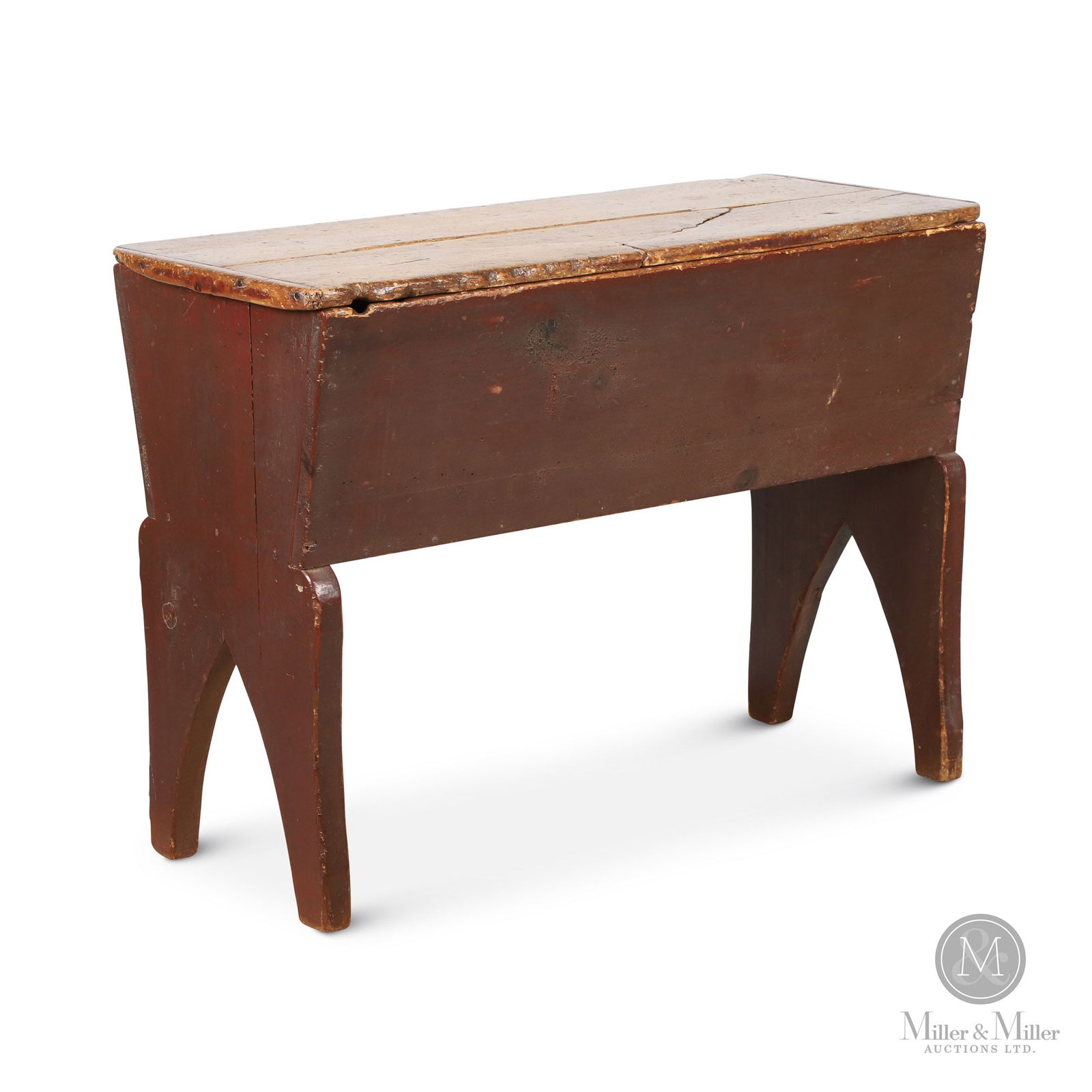 A Pennsylvania Pine Dough Table, c. 18305 days LeftAmerican Painted Pine Bucket Bench5 days LeftFINE ONE DRAWER WORK TABLE IN OLD RED WASH PROB. PENNSYLVANIA 28" X 61" X 34"5 days LeftAMERICAN RUST RED-PAINTED DOLL-SIZE BLANKET CHEST. 10.5"h. 17.5"w. 9.25"d.Mar 19, 2026AMERICAN GRAIN-PAINTED POPLAR AND PINE YOUTH-SIZE BLANKET CHEST, DATED 1837. 12.5"h. 20.75"w.Mar 19, 2026NEW ENGLAND CHIPPENDALE PINE TWO-DRAWER BLANKET CHEST. 31.5"h. 49.5"w. 20.75"d.Mar 19, 2026An oak joint stool,DIMINUTIVE BLANKET CHEST IN ORIGINAL RED PAINT 18" X 30" X 15"5 days LeftAMERICAN BITTERSWEET-PAINTED PINE DOCUMENT BOX. 6.5"h. 17.5"w. 7.25"d.Mar 19, 2026Antique Rustic Painted Wood Bench Stool 30 x 15 x 17.5Mar 21, 2026AMERICAN PINE, MAPLE, AND EBONIZED ONE-DRAWER TAVERN TABLE. 26.5"h. 35.25"w. 22.75"d.Mar 19, 2026AMERICAN CHIPPENDALE MAHOGANY PEMBROKE TABLE WITH TWO DRAWERS.Mar 19, 2026AMERICAN CHIPPENDALE TIGER MAPLE SWING-LEG DROP LEAF TABLE. 28"h. 44.5"w. 44.75" open with 15.5"Mar 19, 2026COUNTRY HEPPLEWHITE PLANK TOP TABLE IN RED PAINT 26 13/4" X 42" X 29 3/4"5 days LeftAMERICAN HEPPLEWHITE PINE TWO-DRAWER WORK TABLE.Mar 19, 2026NEW ENGLAND CHOCOLATE BROWN-PAINTED PINE BLANKET CHEST.Mar 19, 2026