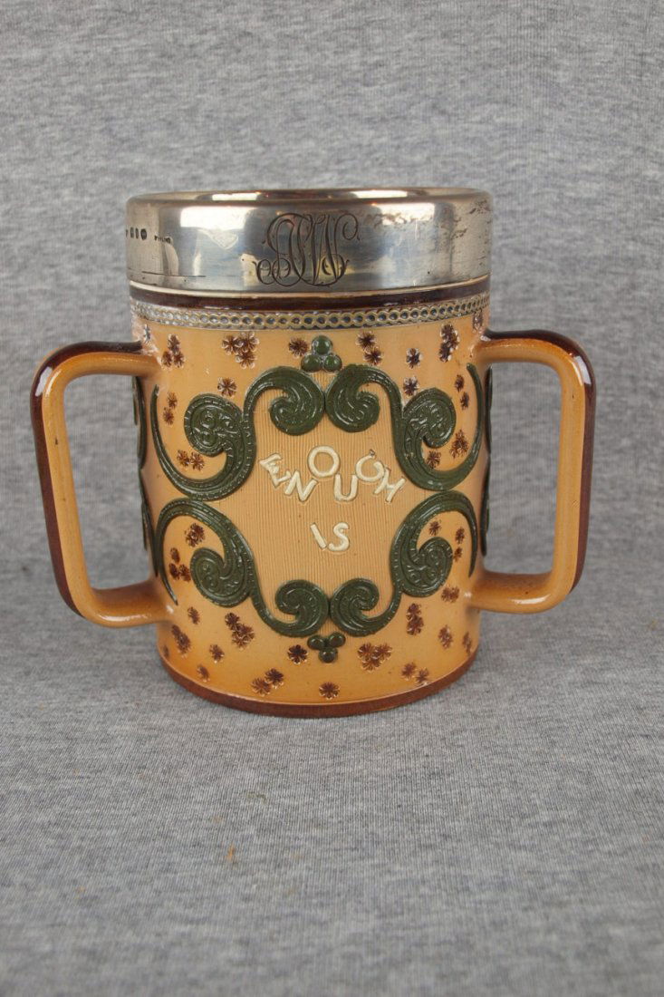 Doulton Lambeth stoneware rare tri-handled trophy mug