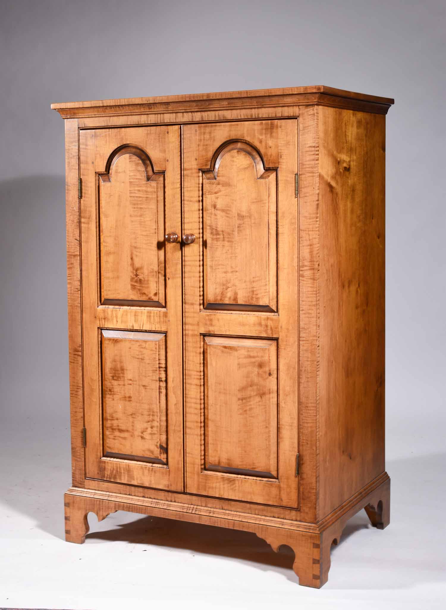D.R. DIMES CURLY MAPLE TWO DOOR CUPBOARD