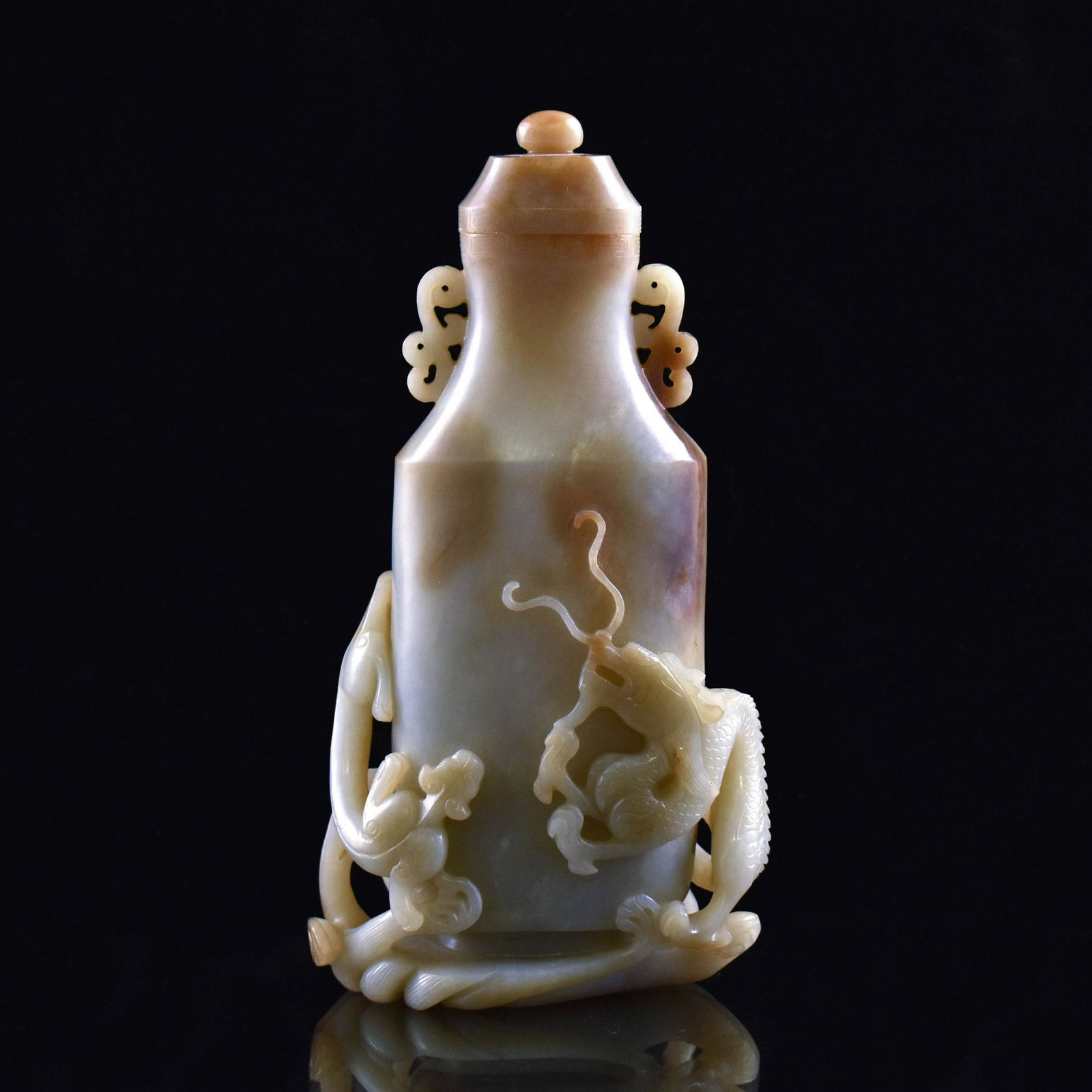 DRAGON & LEOPARD MOTIF JADE VASE