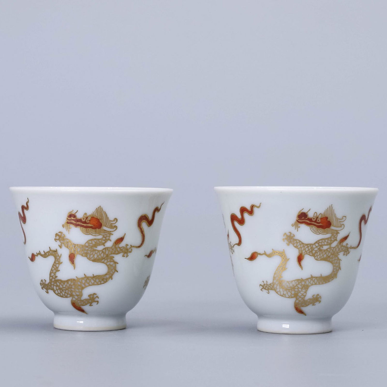 A pair of 'DRAGON' outline in gold cups