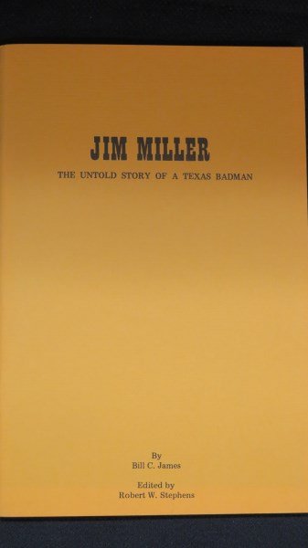 Sold*Limited to Only 100 Copies* Untold Story Texas BadmanJames, Bill C. Jim Miller: Untold Story of a Texas Badman. Carrollton TX: Author 1979. Pb, 32 pages. Note: Signed and Numbered 18 of 100 Copies. Inv. A190See Sold Price