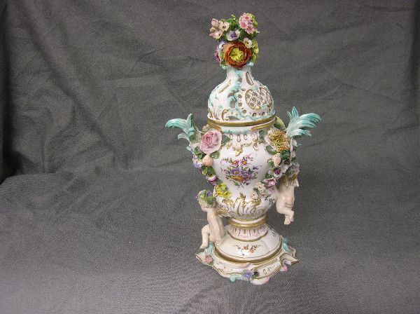 Dresden flower encrusted vase