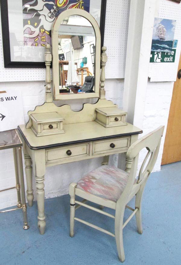 Soldpainted dressing table with mirrorpainted dressing table with mirror. 45" W 19" D 66" H"ALL DESCRIPTIONS AND ANY CONDITION STATEMENT GIVEN BY LANGSTON AUCTION GALLERY ARE STRICTLY OPINIONS AND LANGSTON'S SHALL HAVE NO RESPONSIBILITY FSee Sold Price