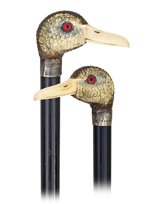 4 Canes & Walking Sticks3 hrs LeftFalcon & Hunting Dog Walking CanesApr 27, 20264 Walking Sticks & Umbrella, 2 Carved Antique Dog Head canes, 1 Resin Eagle Head cane, Antique5 days Left4 Carved Canes3 hrs LeftVintage Carved Bone Snake Head Cane5 days LeftA CHINESE JADE DRAGON CANE HANDLEMay 10, 2026Duck Head Handled Walking CaneApr 27, 2026Antique 1880 French Country Style Cane Oak Settee3 days LeftSet of Vintage Hunting Style Cane Seat Dining Chairs 18804 days LeftA JADEITE DUCK-HEAD KNOB SEALApr 30, 2026Mason Drake Red Head Glass Eye Wooden Duck Decoy2 days LeftVintage 1880 French Oak Dining Chairs with Cane Seats2 days LeftSIMONS BROTHERS (PHILADELPHIA, PENNSYLVANIA) PRESENTATION DRESS CANE / WALKING STICKApr 23, 20264 Canes Including Sterling Handles3 hrs LeftWhaleman Made "C" Grip Cane, circa 1860Apr 25, 2026Hand-carved STAG ANTLER Handle of Bighorn SHEEP