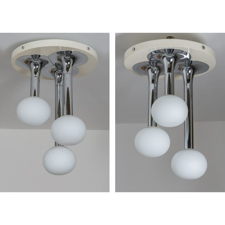 DUE LAMPADE A PLAFONE, anni '70. Metallo