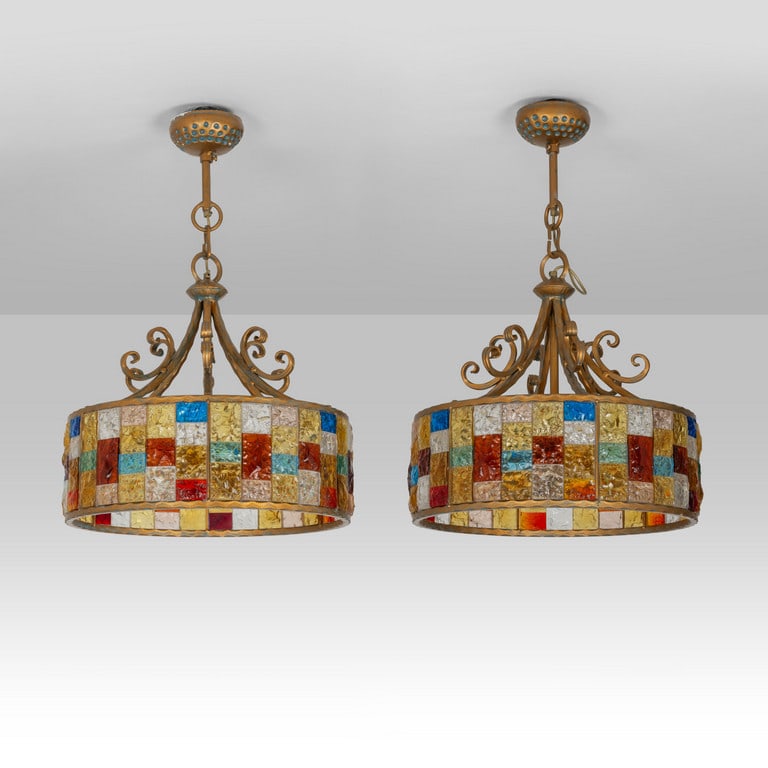 DUE LAMPADE A SOSPENSIONE, anni '60. Ferro