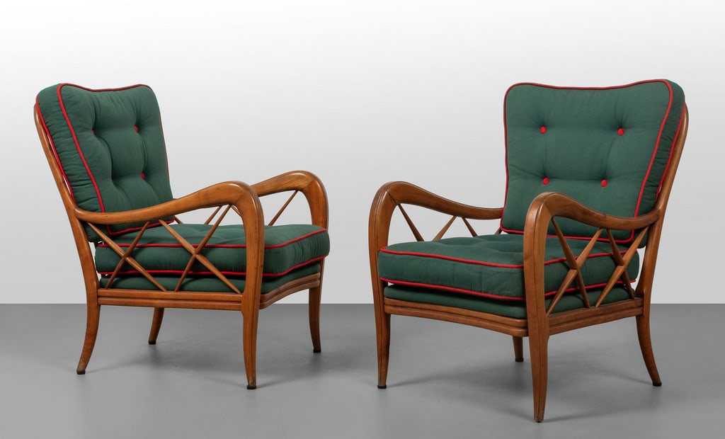 DUE POLTRONE, anni '50. Legno di ciliegio,