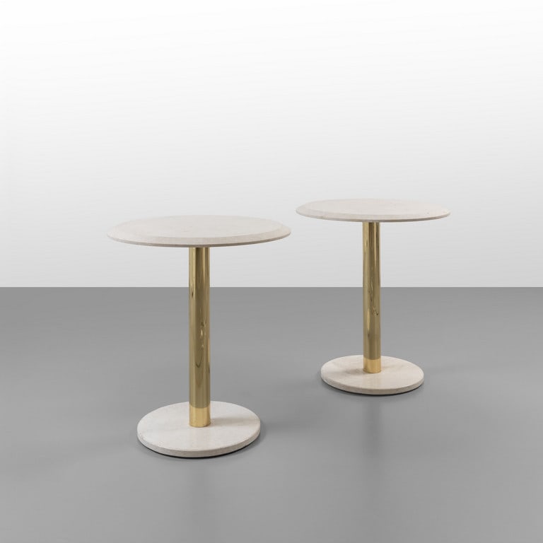 DUE TAVOLINI, anni '70. Marmo, ottone. Cm