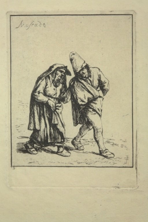 Dutch 17th C Etching "Peasants Along a Path"
