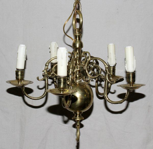 DUTCH BRASS FIVE-LIGHT CHANDELIER, 19TH.C.