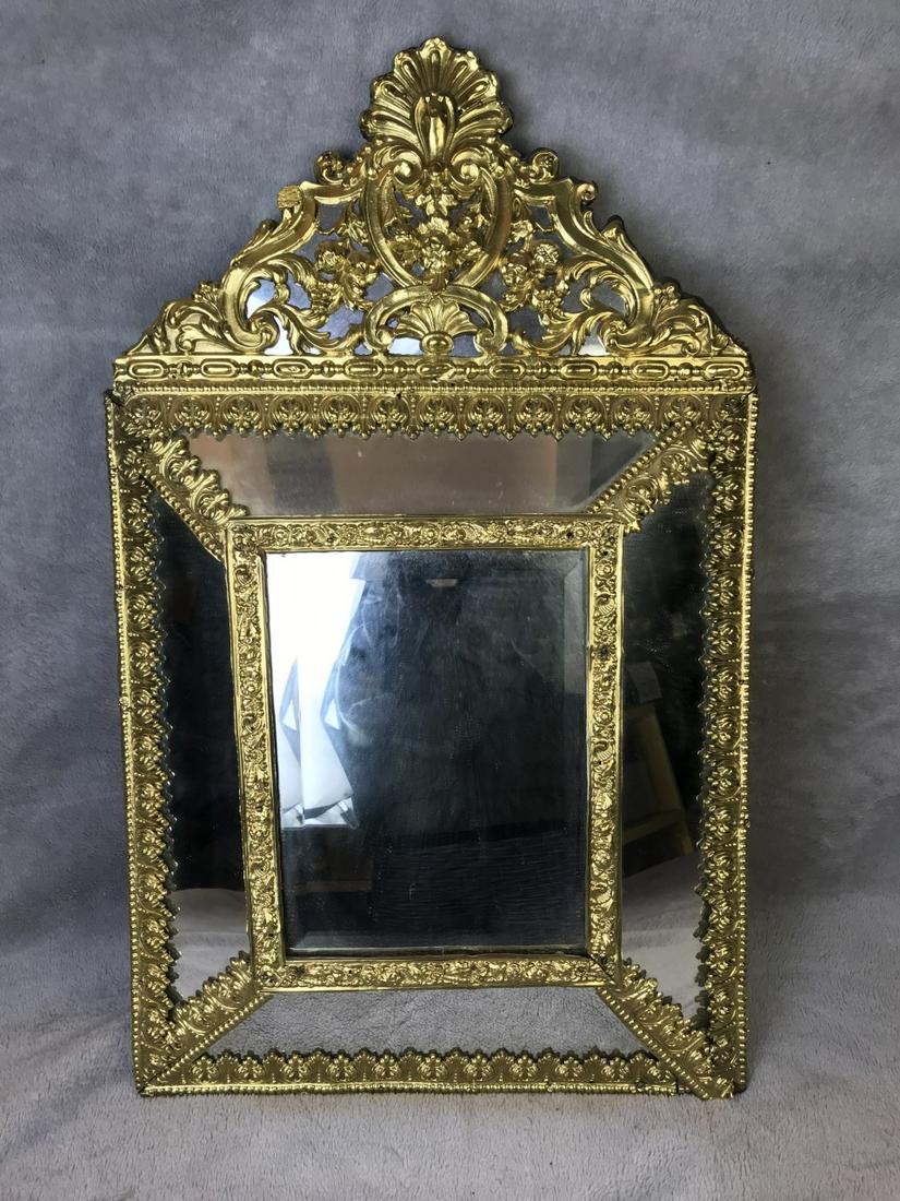 DUTCH EMBOSSED BRASS CUSHION MIRROR