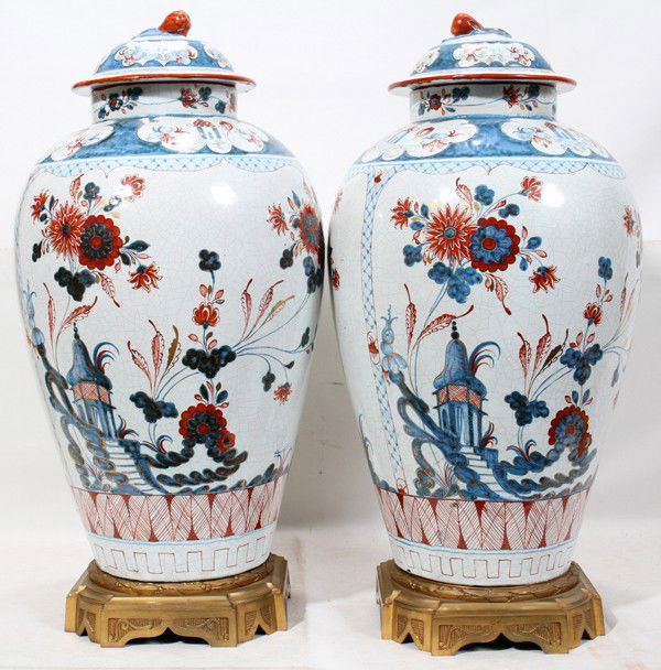 DUTCH FAIENCE STYLE GINGER JARS, PAIR, H 21"