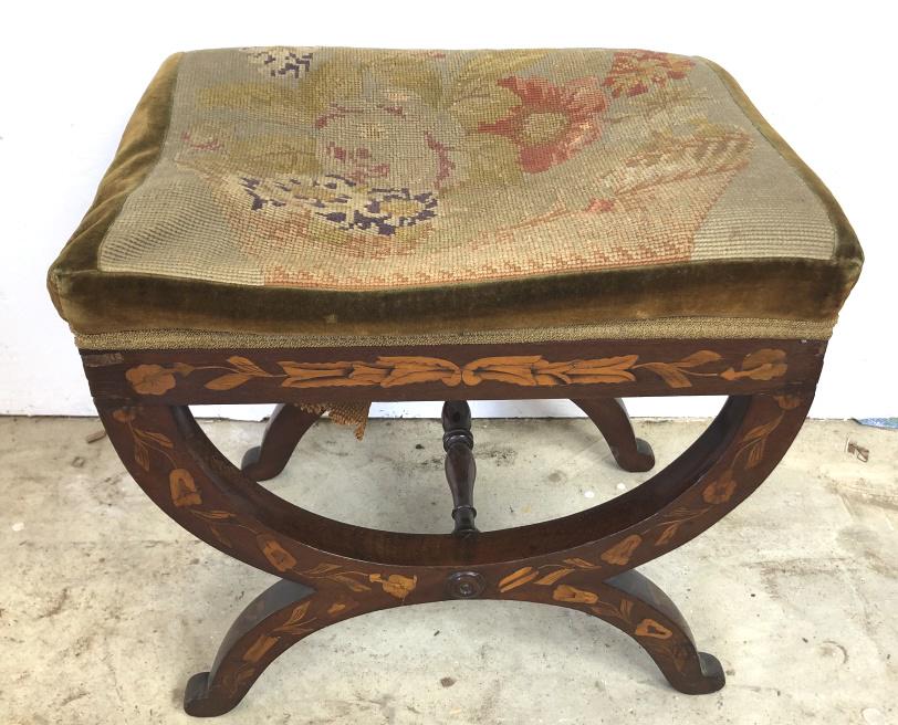 Dutch Marquetry X Form Bench