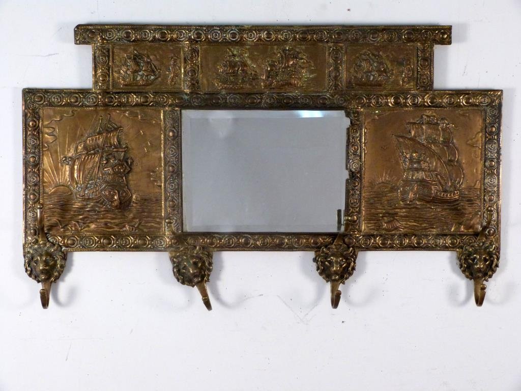 SoldA Dutch Repousse Brass Cushion Mirror Height 51 x widthA Dutch Repousse Brass Cushion Mirror 19TH CENTURY Height 51 x width 30 inches.See Sold Price