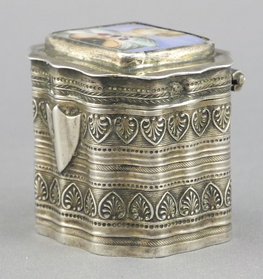 SoldDutch Silver & Enamel Box, 2nd Standard, 1 1/4"h, 16.4g.Dutch Silver & Enamel Box, 2nd Standard, 1 1/4"h, 16.4g.See Sold Price