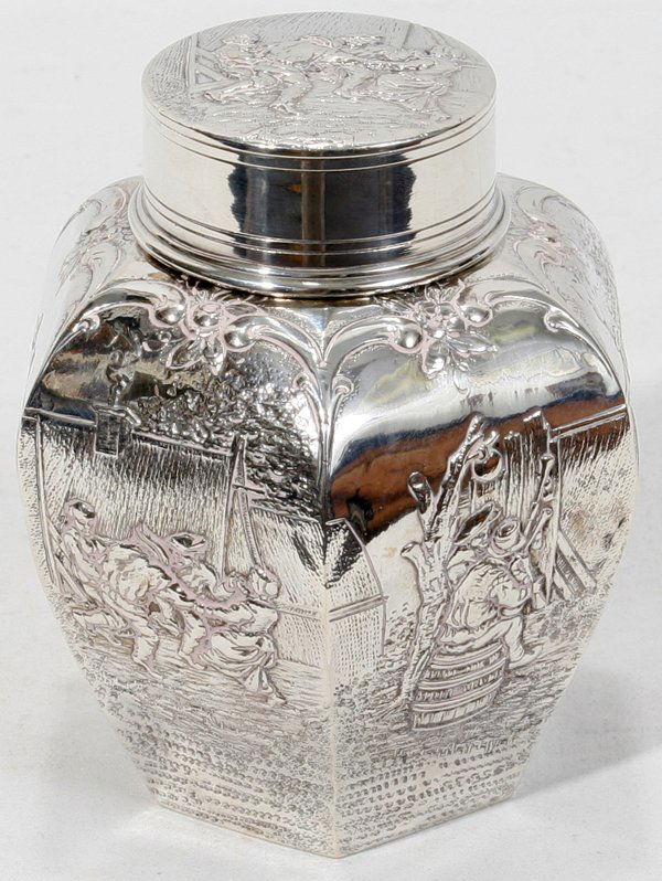 DUTCH SILVER TEA CADDY, H4.6" W3.3"