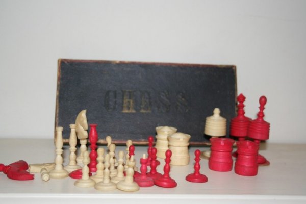 DYED & CVD. IVORY CHESS SET MISSING, 1-QUEEN & FE