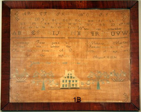 BETHIAH H. FOSTER (AMERICAN, B. 1830) NEEDLEPOINT SAMPLER. Frame, 15.5"h. 19.75"w.2 days LeftEarly 19thC alphabet, verse & pictoral sampler from Scituate, MA by "Isabella Litchfield born6 days LeftSUSAN WHITNEY (AMERICAN) NEEDLEWORK SAMPLER. Frame, 18.25"h. 14"w.2 days LeftEarly pictoral sampler "Sikee Pharo 1732 Her Sampler" - overall framed size 22 3/4" x 9 1/2"6 days LeftAMERICAN NEEDLEWORK SAMPLER. Frame, 21."h. 23.75"w.2 days LeftHANNAH SHED (AMERICAN, B. 1824) NEEDLEWORK SAMPLER, DATED 1833. Frame, 19"h. 18"w.2 days Left1804 SAMPLER BY SARAH STOCK5 days LeftMERIBAH ELLIS (AMERICAN) FAMILY RECORD PETIT POINT SAMPLER.2 days LeftELIZA ELDERD (AMERICAN) NEEDLEWORK SAMPLER, DATED 1806.2 days LeftAntique pictoral sampler w initials, verse, house, flowers, etc - overall framed size 25"x32"5 days LeftSARAH HOMER (AMERICAN) FAMILY REGISTER NEEDLEWORK SAMPLER, DATED 1809.2 days LeftEarly 19thC alphabet & verse sampler "Elizabeth Crane's work Aged 8 yrs August 3d 1824" - overall6 days LeftMARY WARREN (DELAWARE COUNTY, NEW YORK, B. 1823) NEEDLEWORK SAMPLER, DATED 1831. Frame,16.5"h.2 days LeftSOPHIA PULSIPHER (MASSACHUSETTS, B. 1798) WHITE DOVE SCHOOL NEEDLEWORK SAMPLER, DATED 1811. Frame,2 days Left