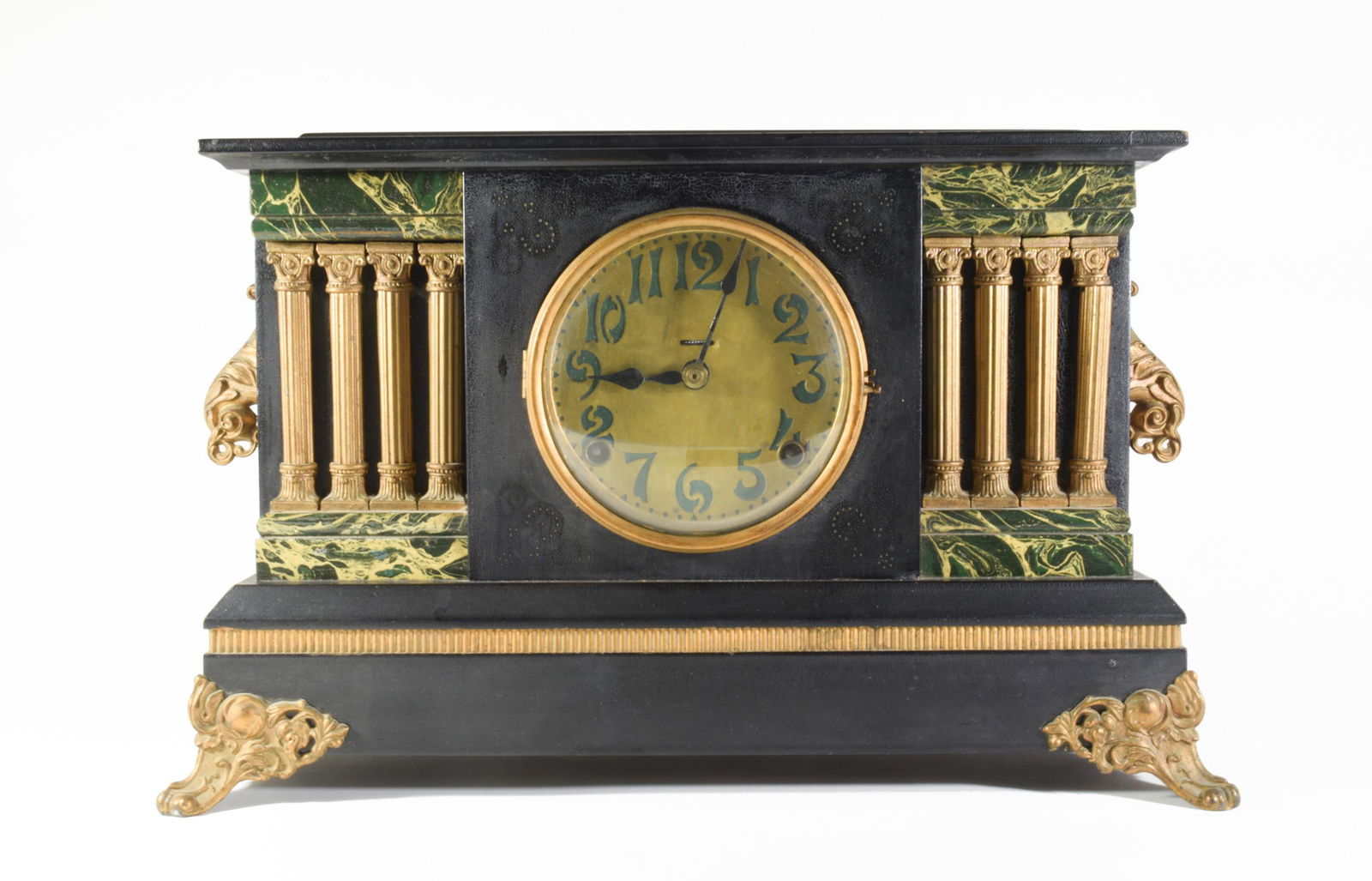 Neoclassical Brass Bracket ClockFeb 26, 2026French Louis XIV Style Brass Mantel ClockFeb 26, 202618th Century Austrian Bracket ClockFeb 26, 2026Black Starr & Frost - Empire Mantle ClockFeb 26, 2026Neo Classical Gilt Brass Mounted Onyx Mantle ClockFeb 26, 2026Victorian Black Marble Mantel Clock with Rouge Marble Columns c.1860American Classical Mantel Clock, “White House” Style (Sessions Clock Co.)Mar 15, 2026SESSIONS ADAMANTINE WOOD MANTEL CLOCK5 days LeftVintage Mantel Clock3 days LeftSeth Thomas Larkin 35 New Sucile Shasta Adamantine Mantle ClockMar 15, 2026Victorian Ormolu Mounted Ebonized Bracket Clock2 hrs LeftAntique Seth Thomas Adamantine 6 Pillar Mantle ClockMar 14, 2026Ornate American Mantel Clock with Lion MasksMar 15, 2026Gilbert Faux Black Marble Time and Strike Mantle Clock, c. 1900, H.- 11 3/4 in., W.- 17 1/2 in., D.-Feb 27, 2026Neoclassical Style Slate Marble Mantle Clock3 days LeftEarly Ansonia Black Onyx / Slate Mantel Clock w/ Columns and Brass Accents & Mytholigical Battle SceMar 02, 2026