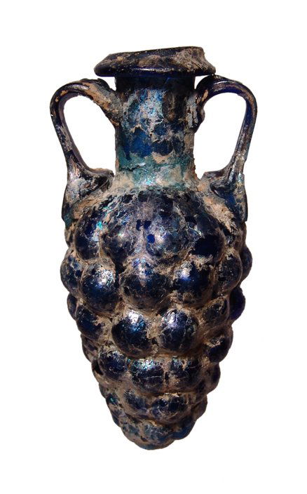 E. Mediterranean blue glass grape flask