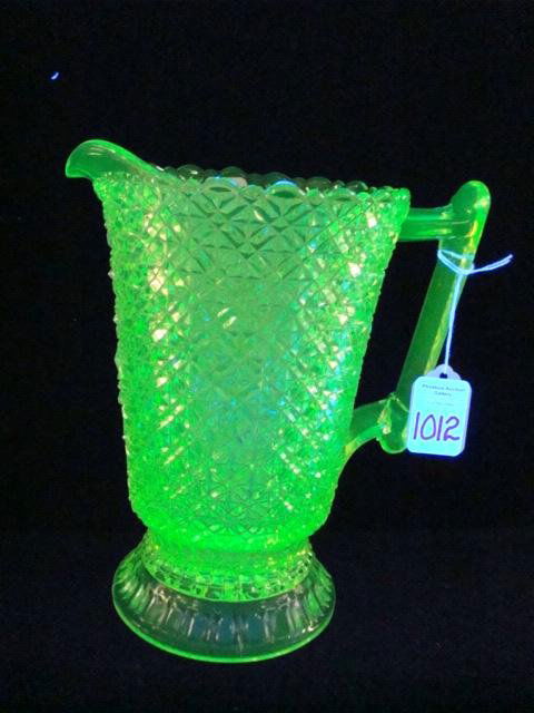 EAPG Vaseline Glass Finecut Pattern Pitcher