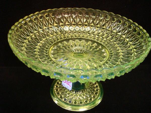 EAPG Vaseline Glass Pressed Diamond Large Compote
